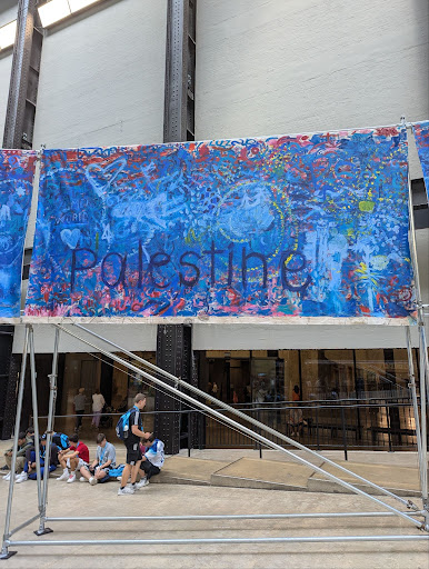 מזג האוויר היה נעים והחלטנו לצעוד ברגל לטייט. בעודנו מנווטים התחלנו לשמוע את הרעש. חשבנו שמדובר במופע רחוב קולני במיוחד, אבל קשה לטעות בזמזום של המון עצבני. פנינו שמאלה ומצאנו את עצמנו בפאתיה של הפגנת ענק בלב לונדון. תיירים, כמונו, חצו את הכיכר מצד לצד בתוך המון סואן שהניף דגלי בריטניה. סרקנו את השטח בחיפוש אחר דגלי פלשתין. לא מצאנו.